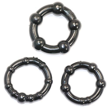 Kit Cockring Triple Noir, composé de 3 cockrings perlés de tailles différentes, pour une érection super dure.